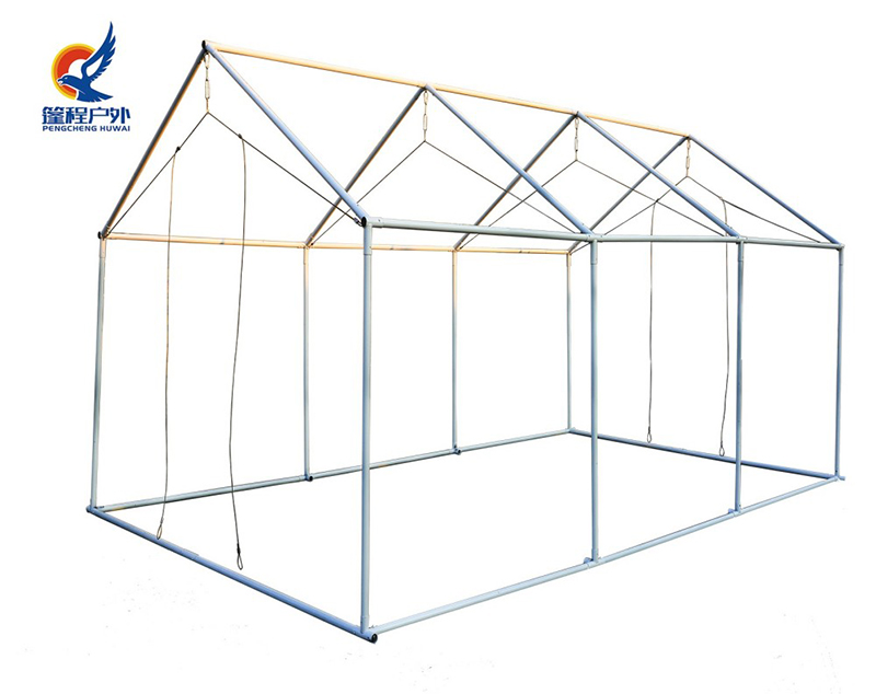 A sátor megbízhatósága elsősorban a méretek és anyagok kiválóságára való törekvésből fakad. A Pengcheng Outdoor kiváló minőségű, nagyfrekvenciás hegesztett csöveket használ, amelyek CNC csőhajlító gépekkel nagy pontosságú hajlításon mennek keresztül annak érdekében, hogy minden konzol pontosan megfeleljen a tervezett csúcsmagasságnak és ereszmagasságnak – ez a sátor gyors összeszerelésének és az általános szerkezeti stabilitásnak a fizikai előfeltétele. Minden acélcsövet festékszórással kezelnek, hogy szilárd korrózióálló védőréteget képezzenek. A sátorszövet kiszámítása és vágása a pontos méretek szerint történik: nagy sűrűségű, vízálló Oxford kendőt használunk, kétoldalas PVC bevonattal, amely több funkciót is integrál, mint például a vízszigetelés, a penész elleni védelem és az UV-állóság, így biztosítva a termék tartósságát és az anyag szempontjából könnyű karbantartást.