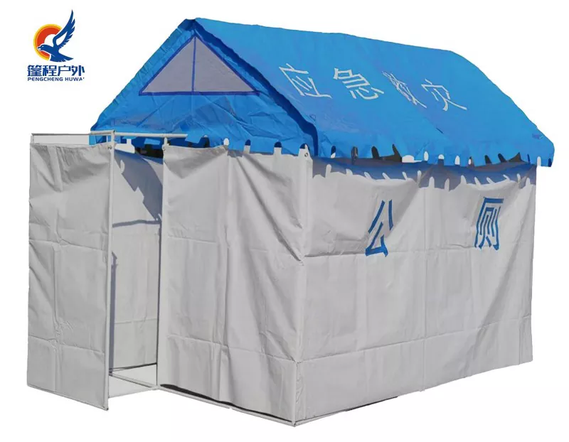 A Pengcheng Outdoor által saját kínai gyáraiban gyártott vészhelyzeti katasztrófavédelmi WC-sátor dupla lejtős függőleges falszerkezettel rendelkezik – robusztus, könnyen karbantartható, gyorsan összeszerelhető, esőálló és tartós. Alkalmas különféle katasztrófa-mentési helyszínekre, kielégíti az ideiglenes higiéniai létesítmények iránti igényt.