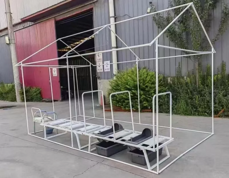 A dupla lejtős függőleges falszerkezetnek köszönhetően a sátor robusztus és könnyen karbantartható. Négyszögletes alappal rendelkezik, előszobával, és a környező falak tetején fenntartott résekkel rendelkezik a szellőzés érdekében. Elsősorban alapvető WC- és kézmosási funkciókat lát el a katasztrófa áldozatai és mentői számára, biztosítja a közegészséget és a közbiztonságot. A gyors összeszerelés, az esőállóság és a tartósság jellemzőinek köszönhetően a sátor alkalmazkodik a kültéri vagy zord környezethez. A gyakorlati alkalmazásokban hatékonyan javítja a sürgősségi mentés hatékonyságát és csökkenti a betegségek átvitelének kockázatát.